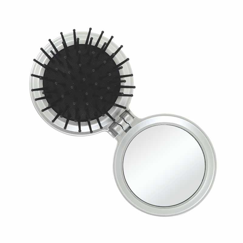 Espejo con cepillo fabricado en plástico ABS formato circular. Se presenta en caja individual.