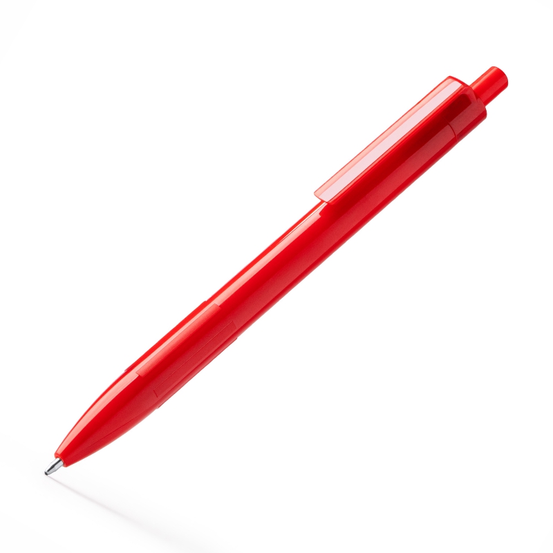 Bolígrafo elaborado en ABS reciclado con clip y pulsador a conjunto del cuerpo. Tinta azul.