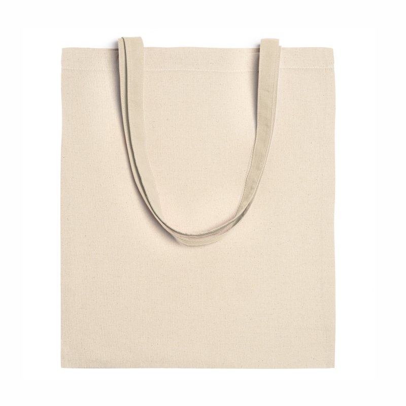 Bolsa 100% algodón de 240 g/m² en acabado natural. Asas largas de 70 cm.