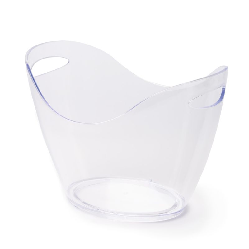 Cubitera transparente con asa elaborada en resistente PS. Disponible en