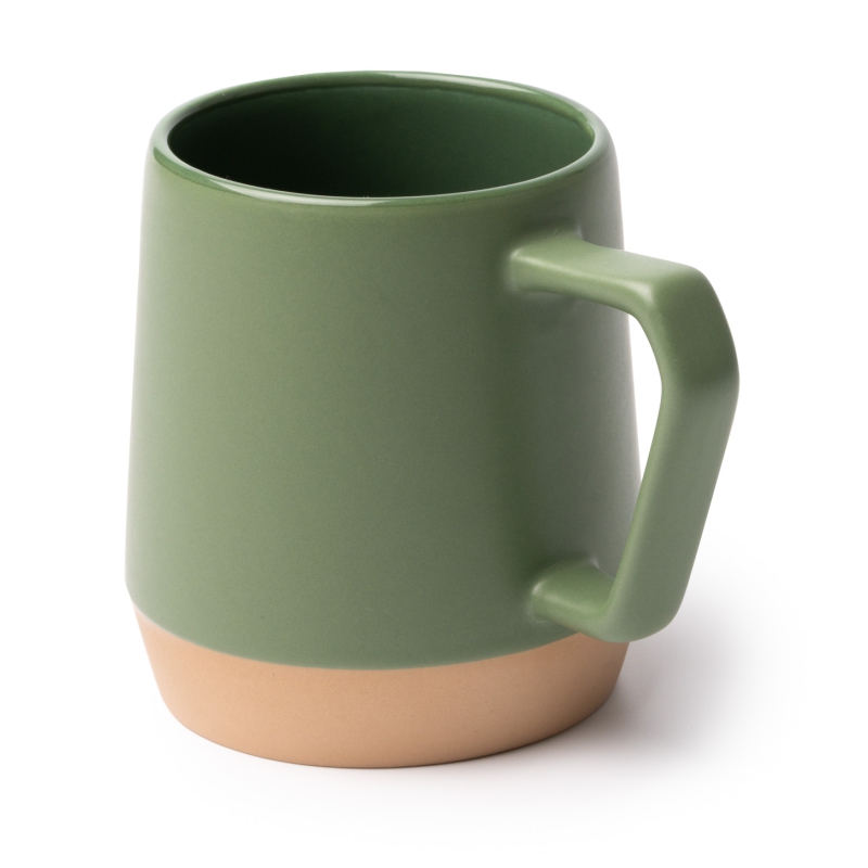 Taza de cerámica combinada con base en color natural. Diseño acabado mate y asa geométrica. Capacidad 320 ml. Presentación individual en caja blanca.