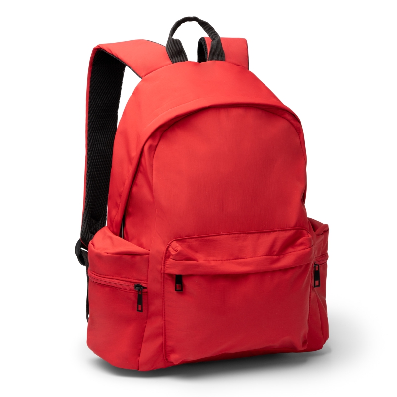 Mochila realizada en Nylon reciclado 420D. Doble compartimento lateral con apertura superior y cierre de cremallera. Bolsillo frontal. Compartimento para portátil de 15". Espalda y asas acolchadas.