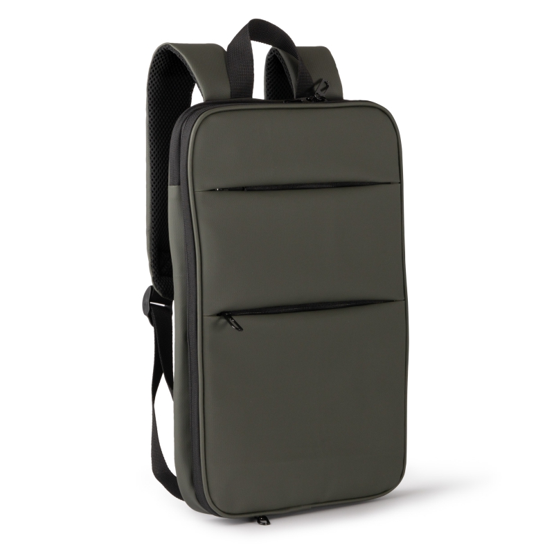 Mochila elaborada en PU Leather. Dos compartimentos principales, uno de ellos extensible. Compartimento interior para portátil 15"". Dos bolsillos frontales invisibles. Bolsillo trasero. Dos compartimentos de rejilla laterales para bidones. Espalda y asas acolchadas.