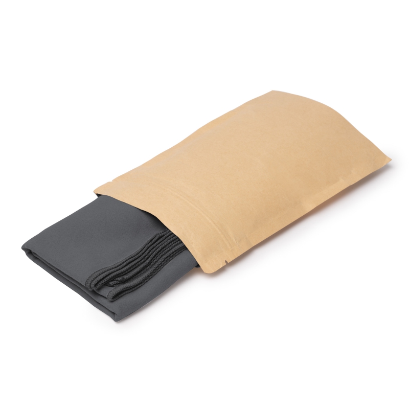 Toalla de poliéster reciclado Microfibra RPET de 200g/m². Presentación en sobre kraft.